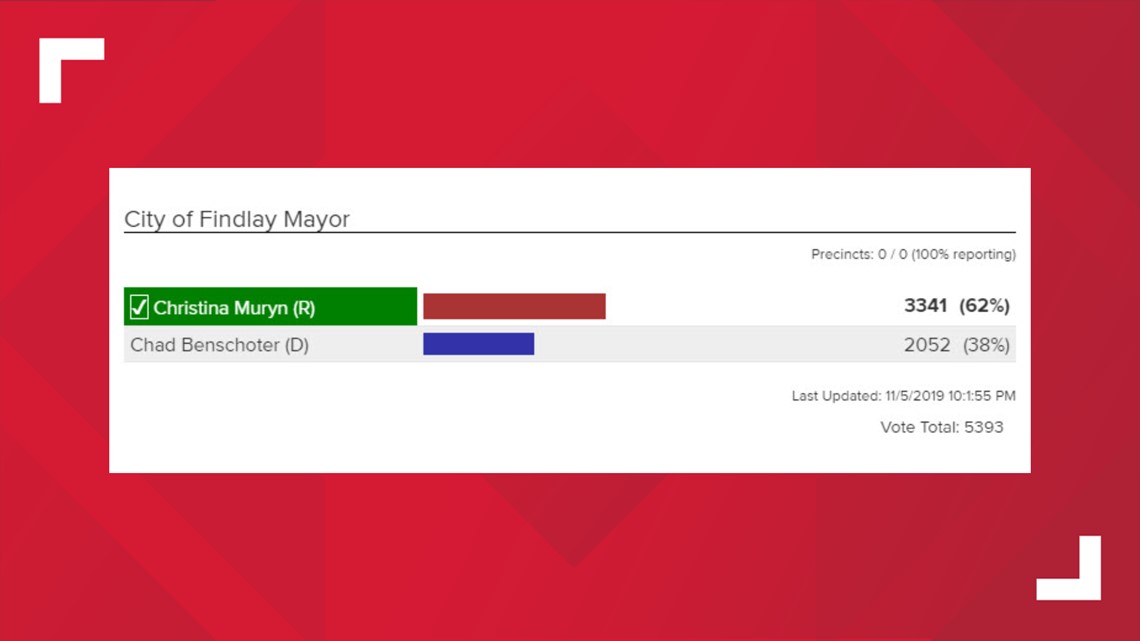 Keep in mind the results as with any election will be unofficial until certified by the board of elections. Findlay OH 45840 Use the rear entrance. Mayor Christina Muryn has earned a full four years as Findlays mayor.