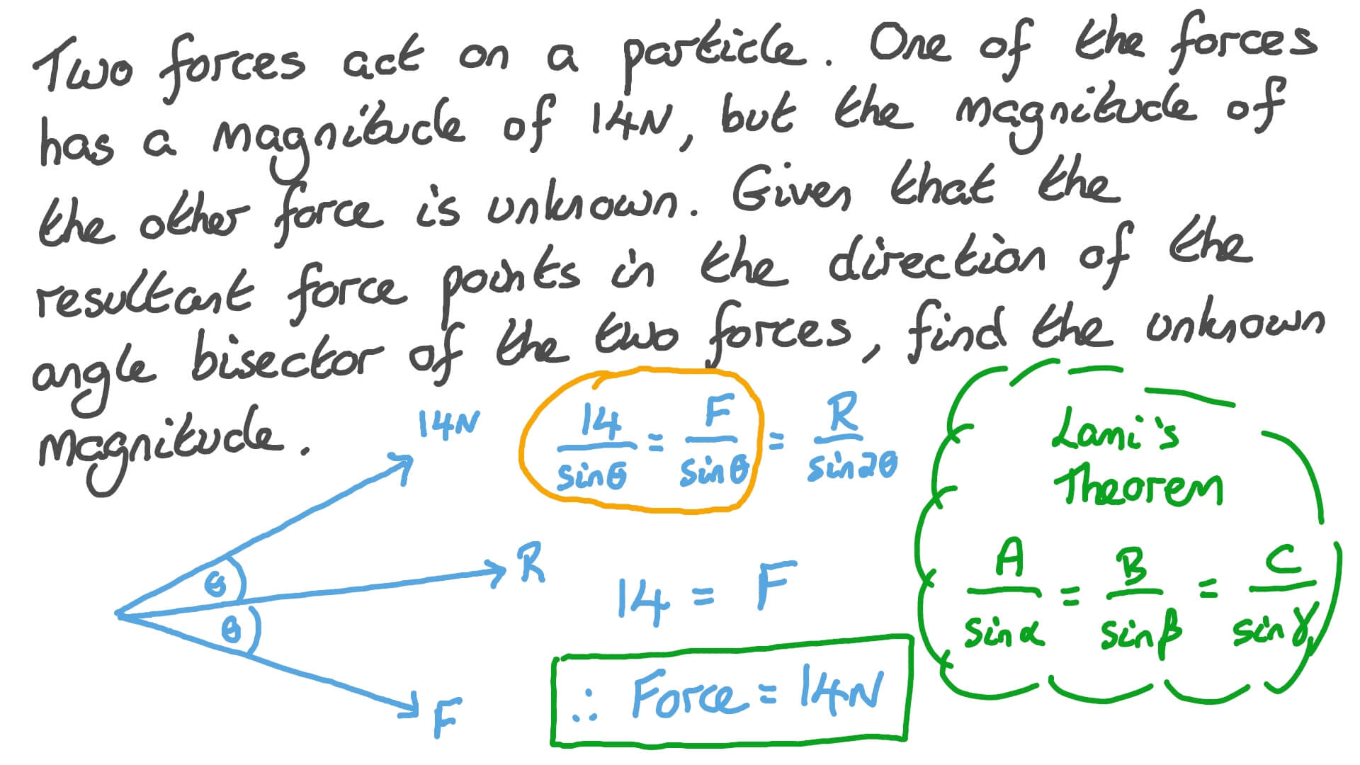 The law of sines gives the relationship between the forces and the angles. Finding resultant force using vector scale diagrams for GCSE Physics 9-1. Now p x2 y2 15 q x2 y2 2xycos60 18.